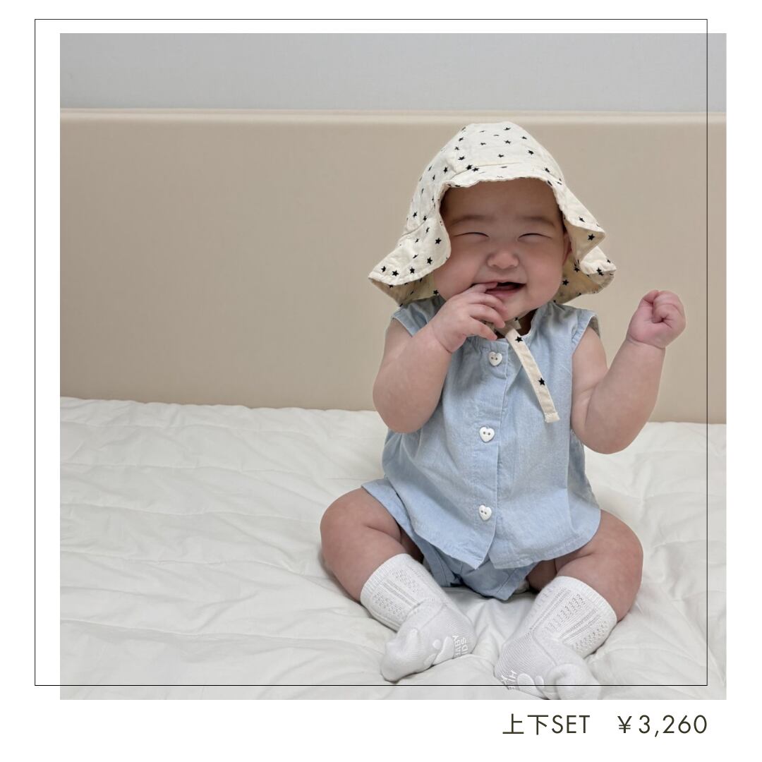 [即納]コットンデニムベスト上下セット ベスト+ショートパンツ baby 70・80