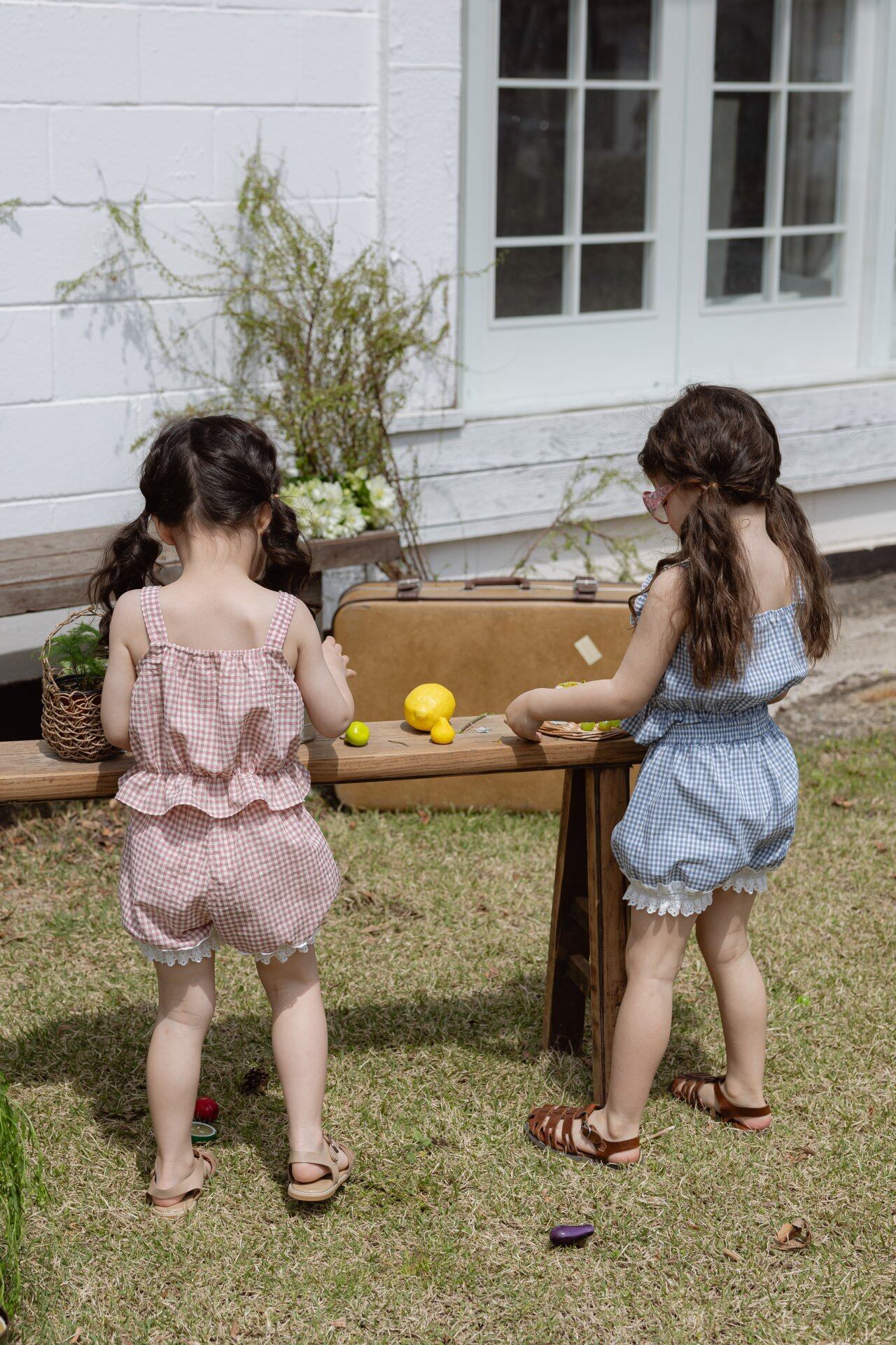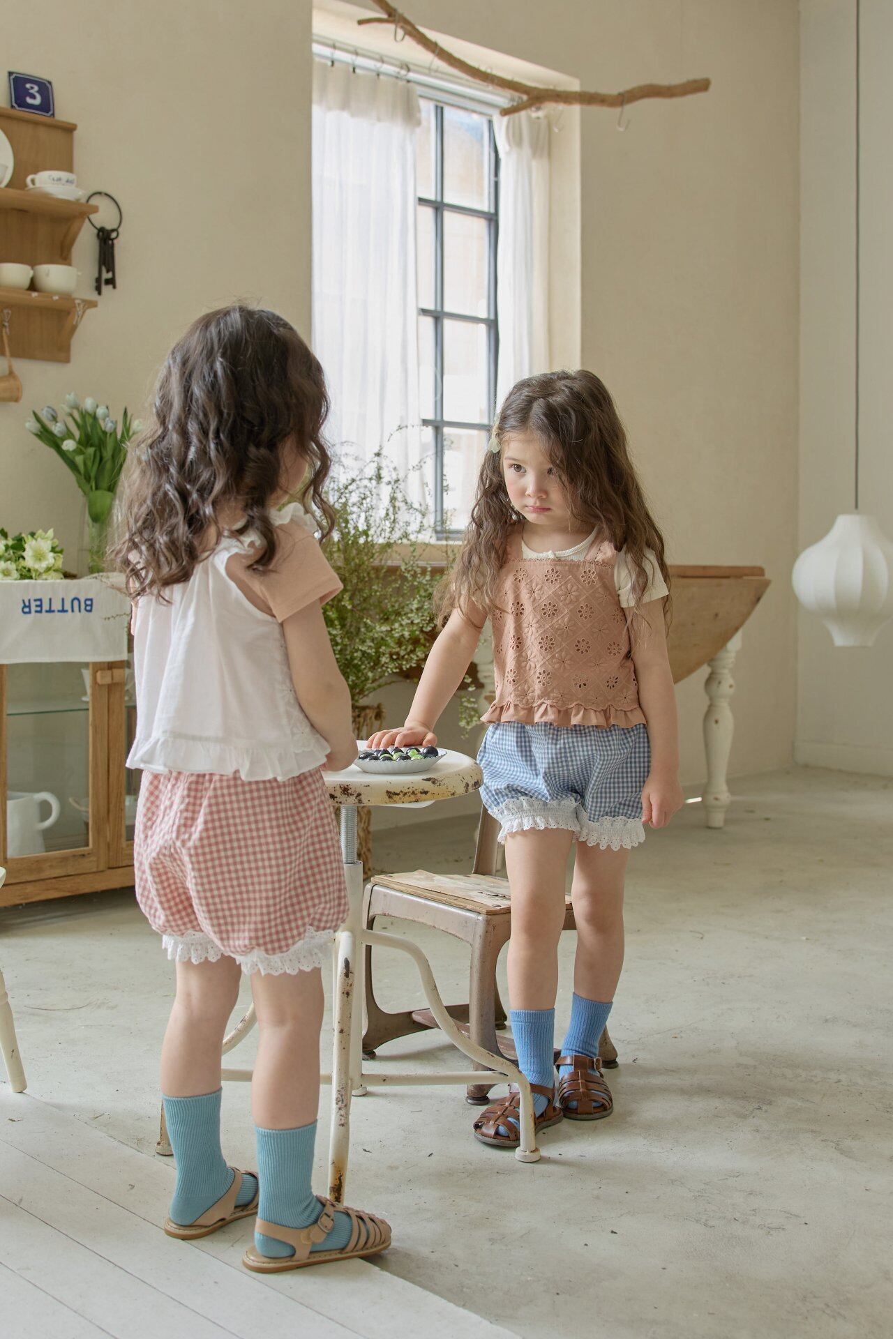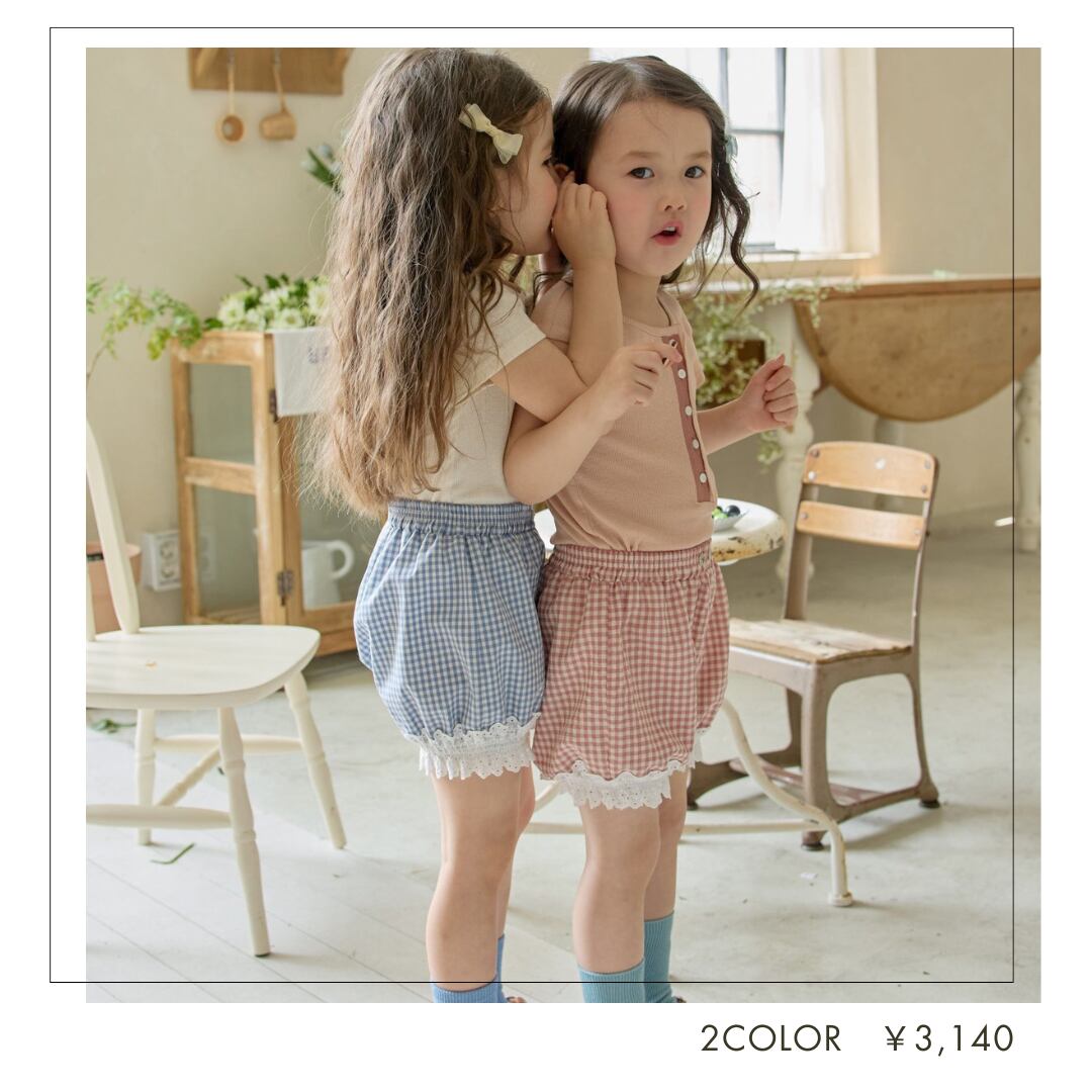 [即納]ギンガムチェック レースショートパンツ 90・100
