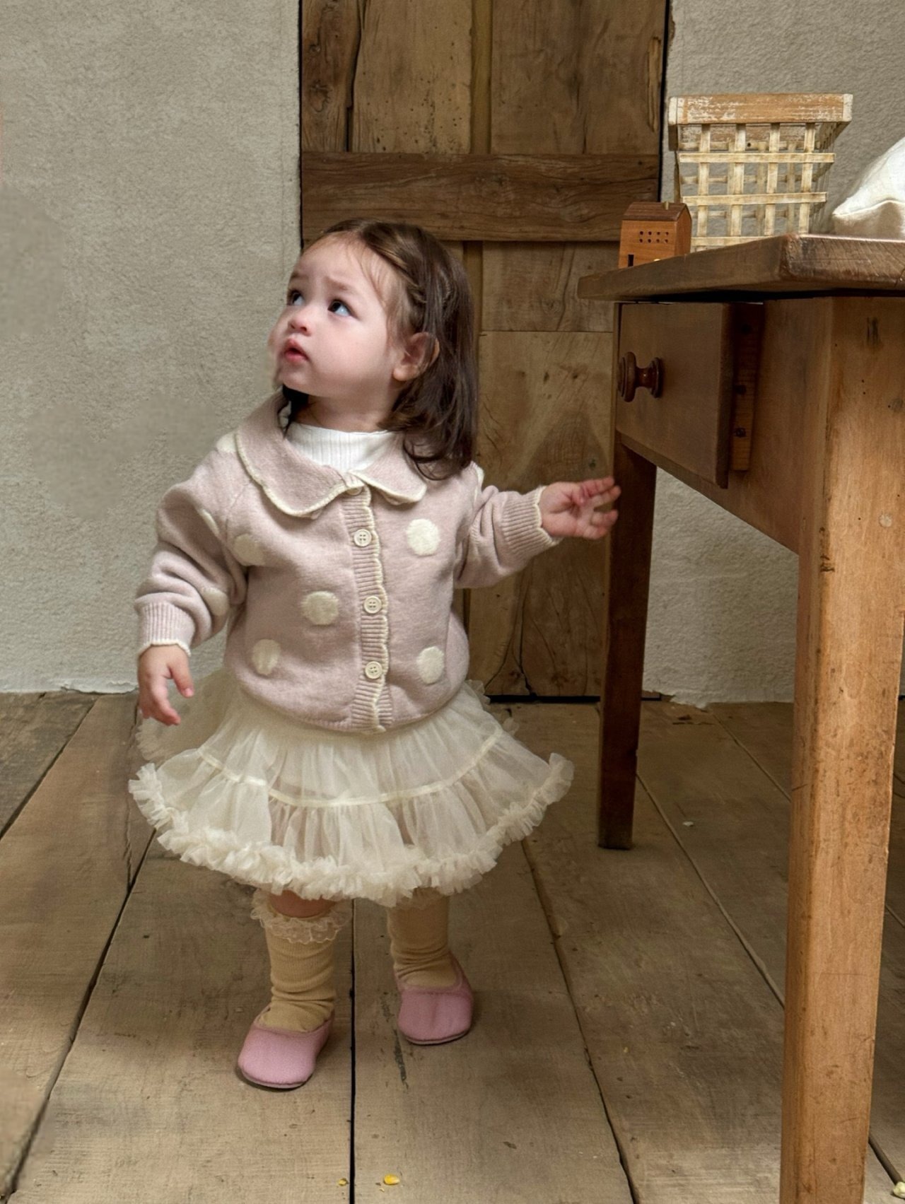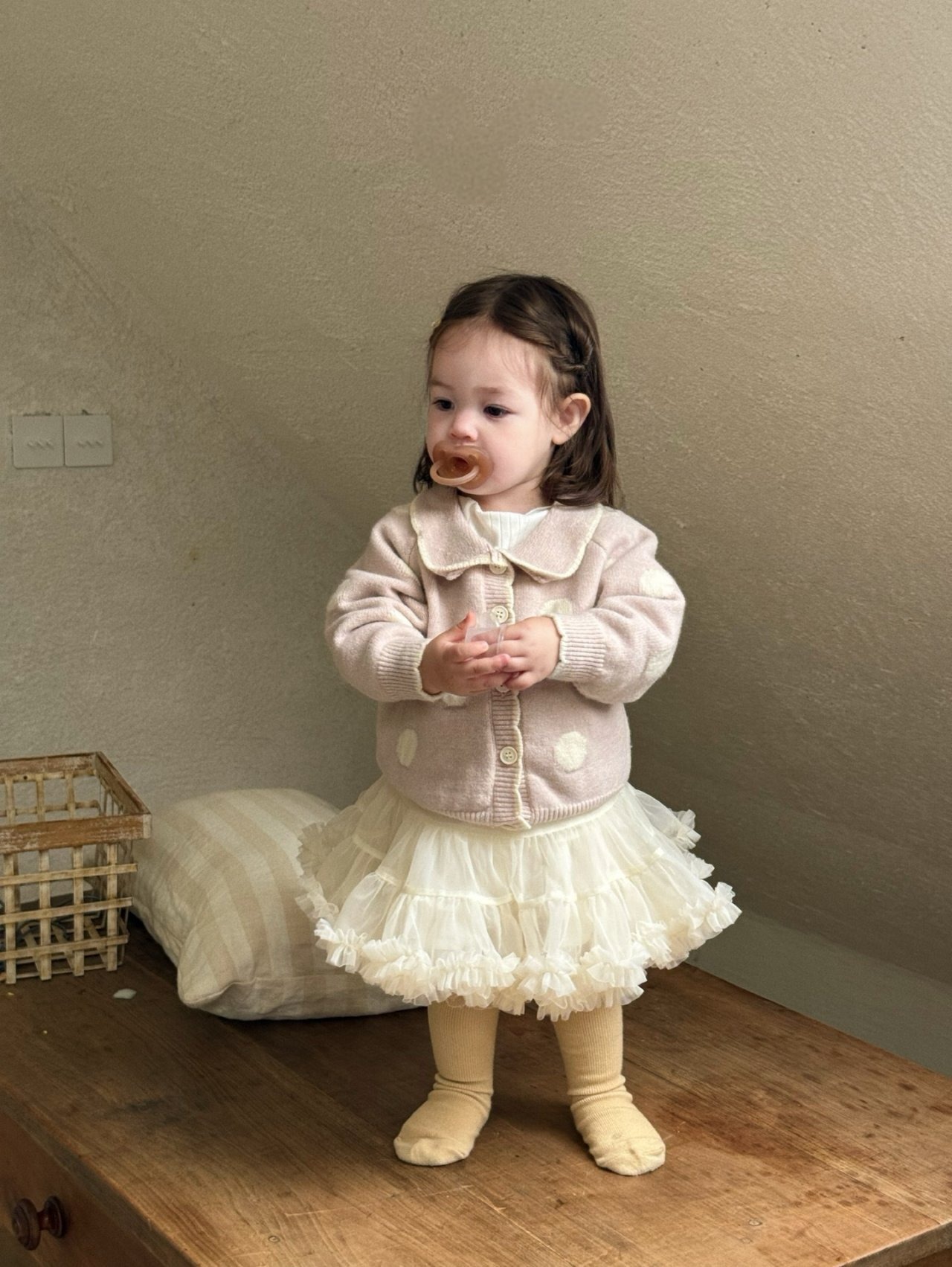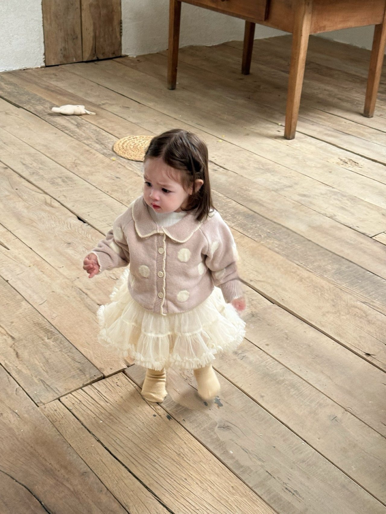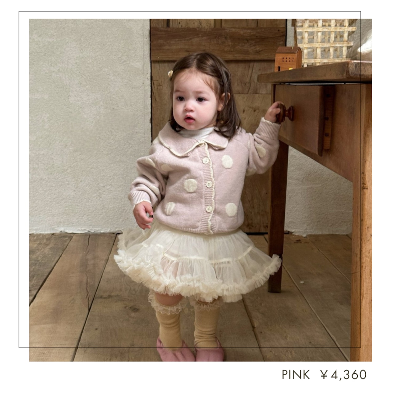 淡いピンクカラーのドット柄ニットカーディガン♡