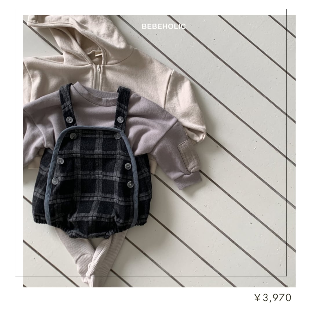 くすみブルーの縁取りがかわいすぎるサスペンダースーツ♡