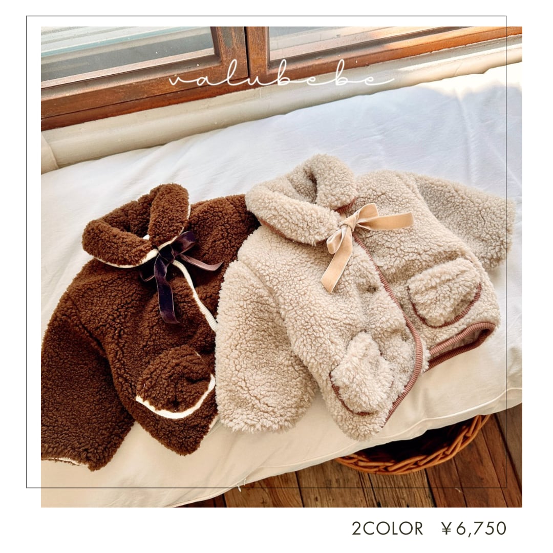[即納]リボンネクタイ ボアジャケット ジャンパー 2color 70・80