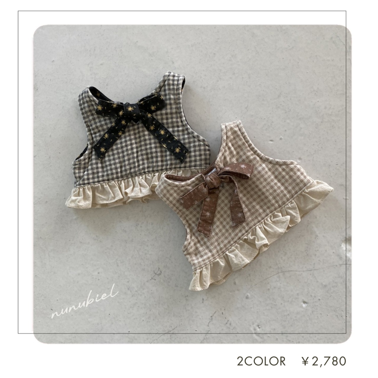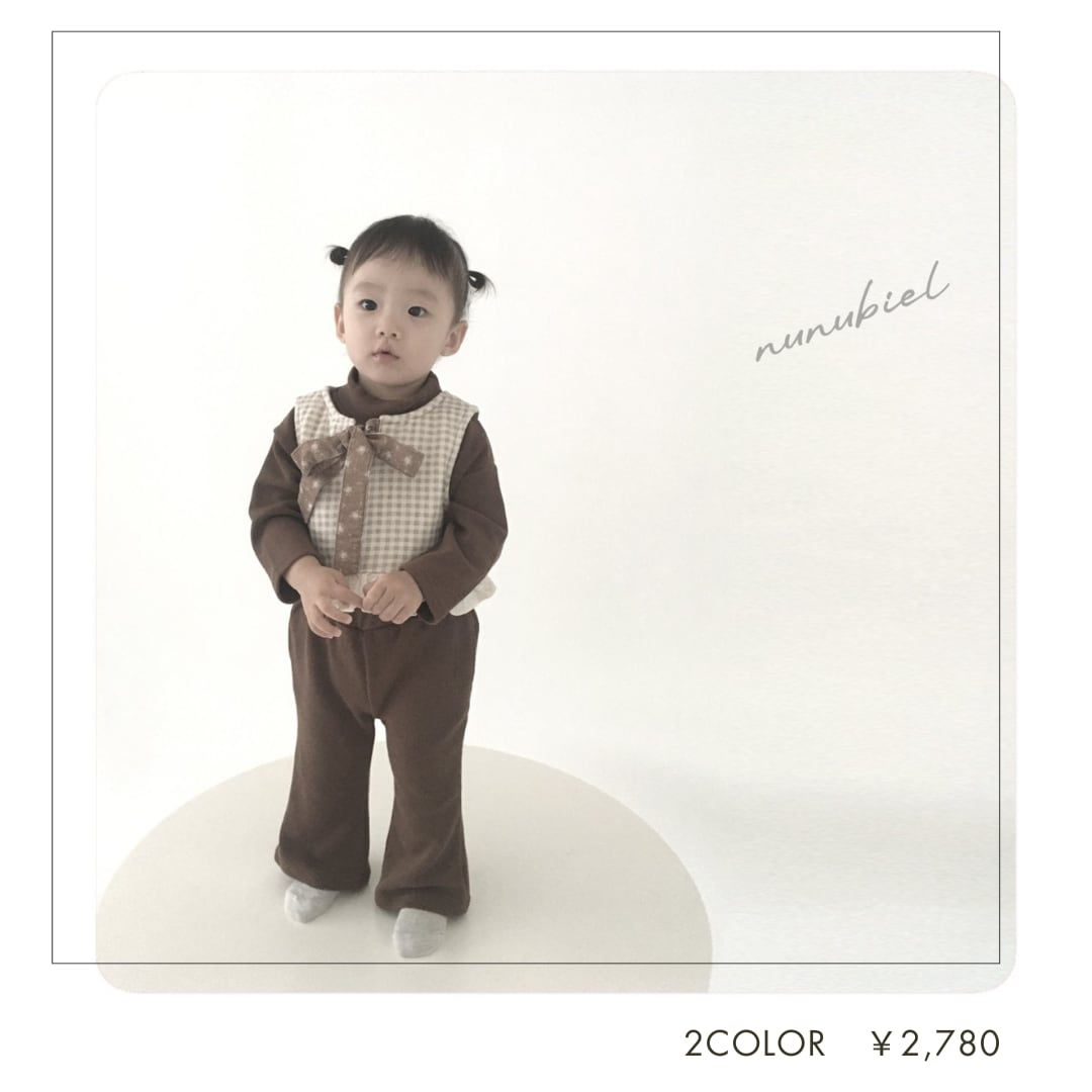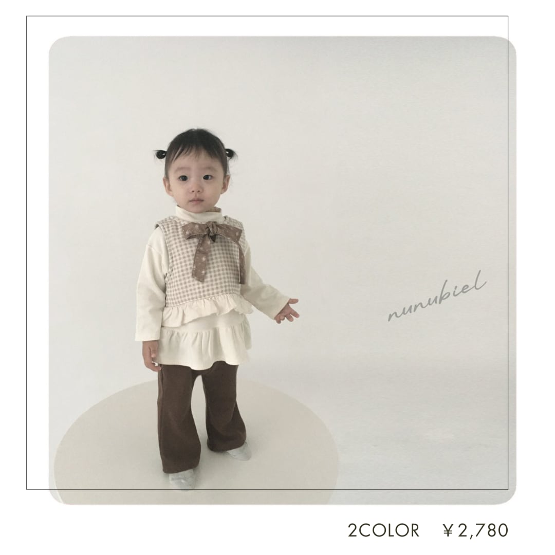[即納]リボンベスト ギンガムチャックベスト cheese vest 80・90・100 韓国子供服