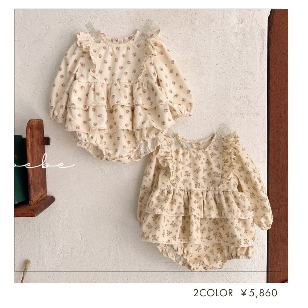 [即納]小花柄フリルスーツ ロンパース 65・70・80 韓国子供服