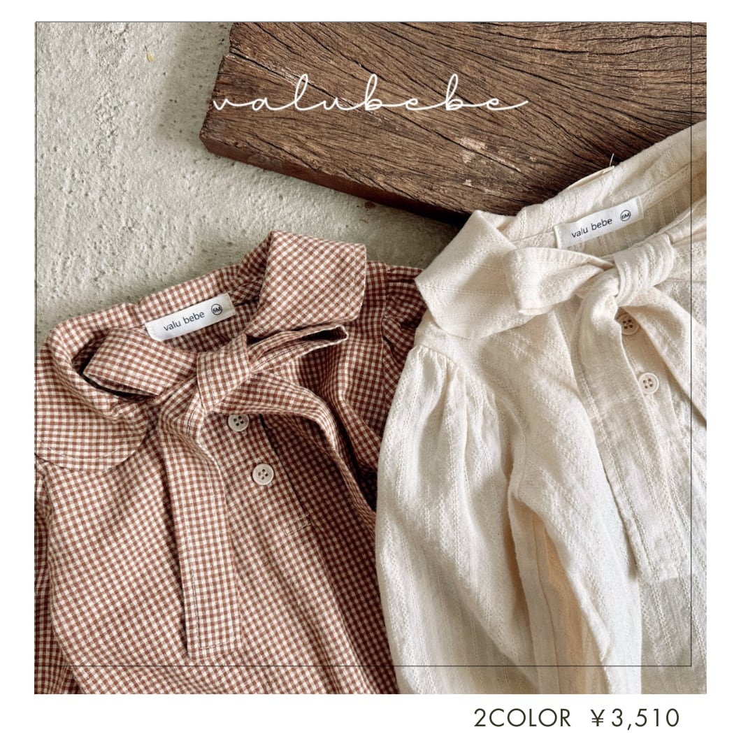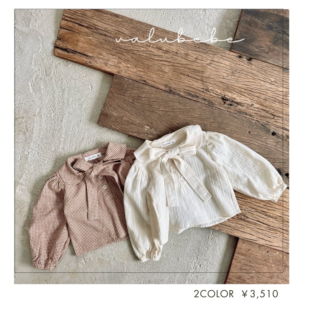 [即納]リボンブラウス チェックorクリーム 70・80 韓国子供服