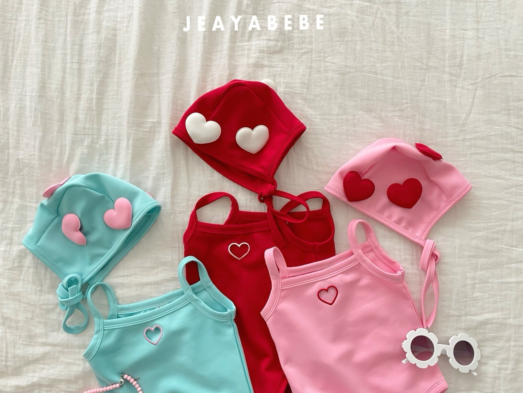 ポップカラーでハートのモチーフがかわいい水着set♡