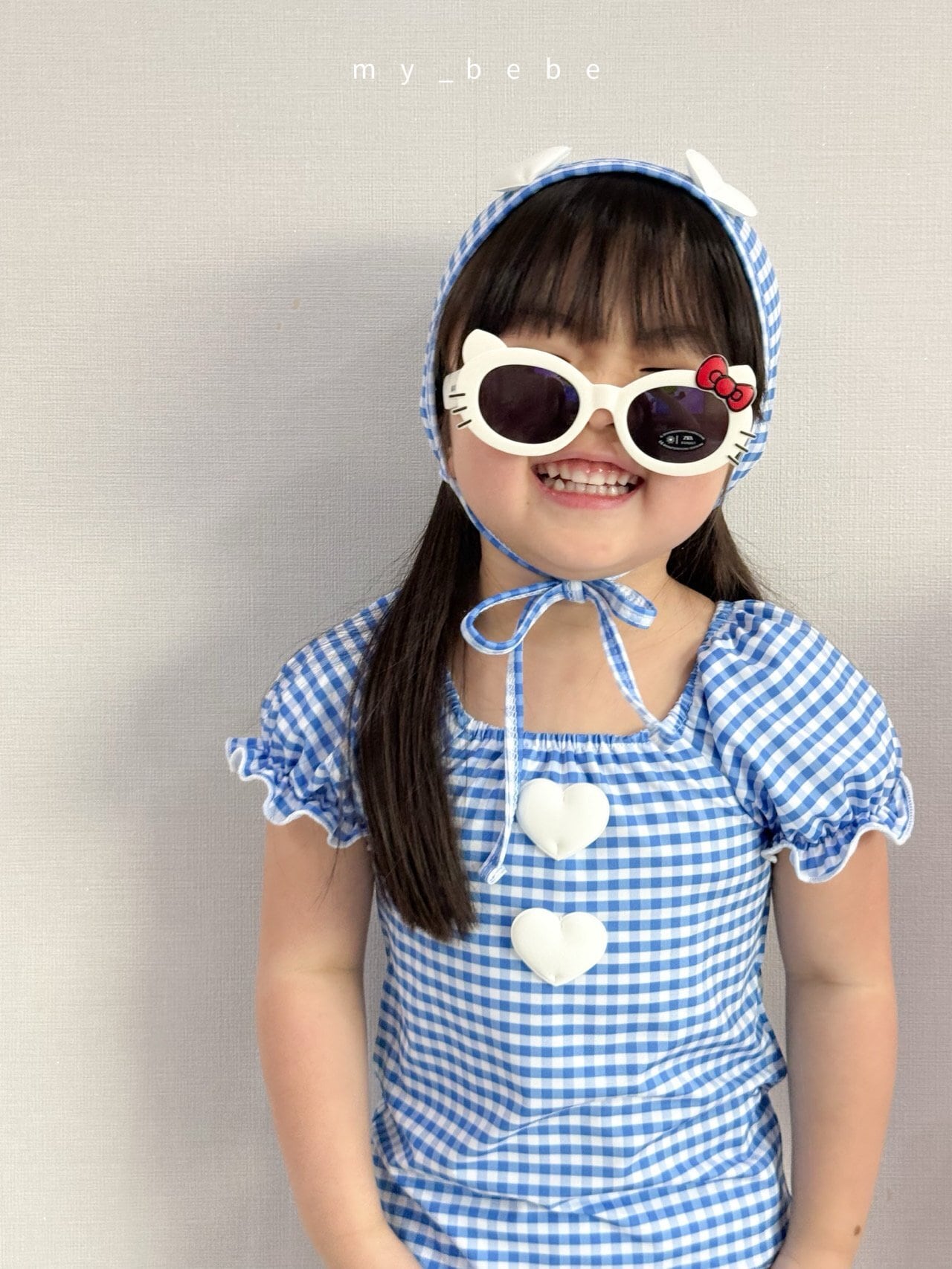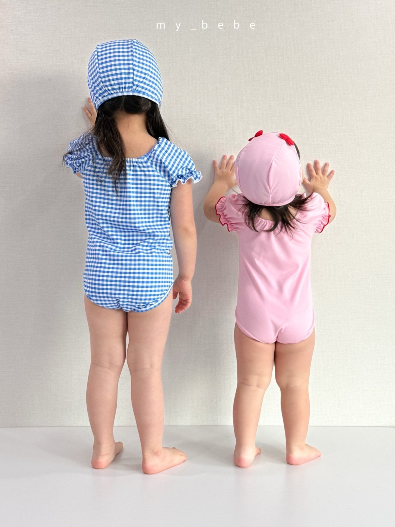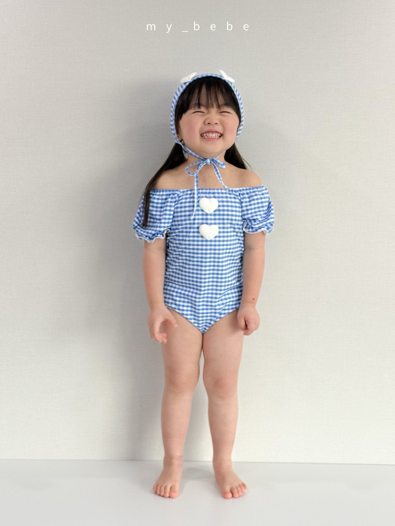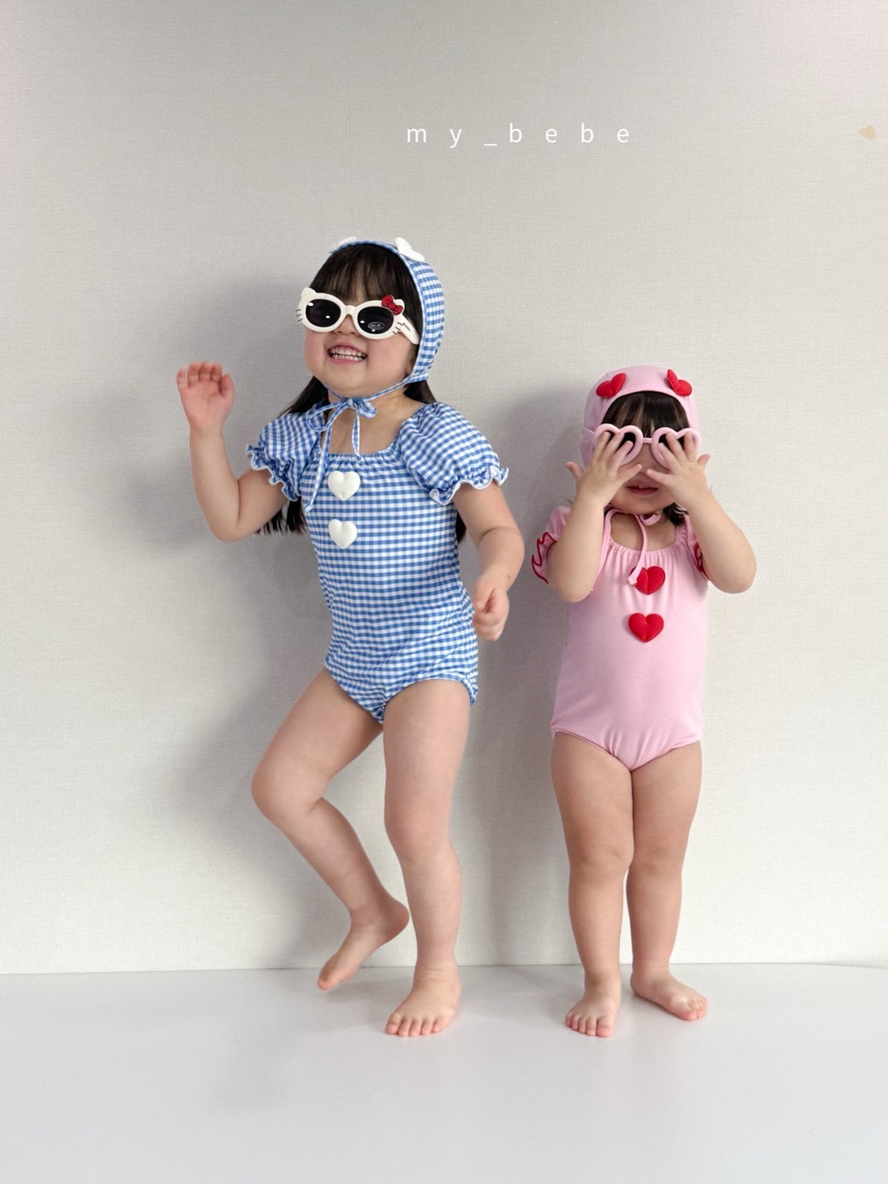 ハートモチーフがとってもかわいいワンピースタイプの水着帽子set♡