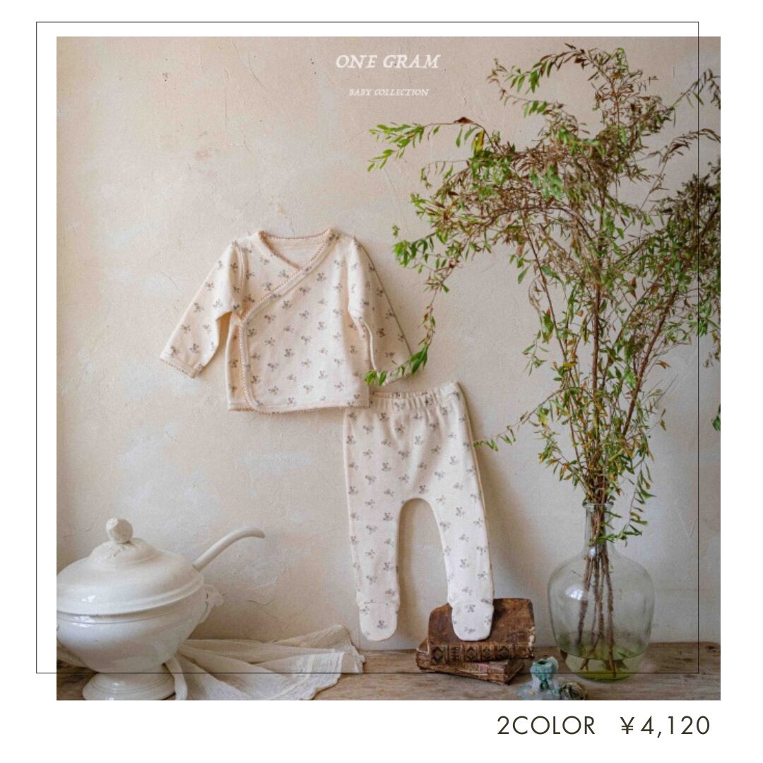 [即納]お花柄セットアップ くすみカラー 新生児 50・60・70