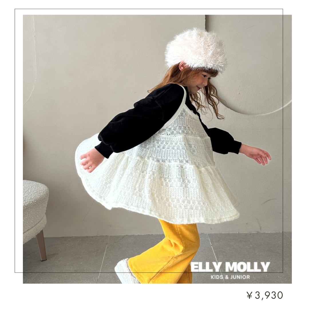 [即納]ニットレースワンピース チュニック キャミソール 重ね着 110・120・130