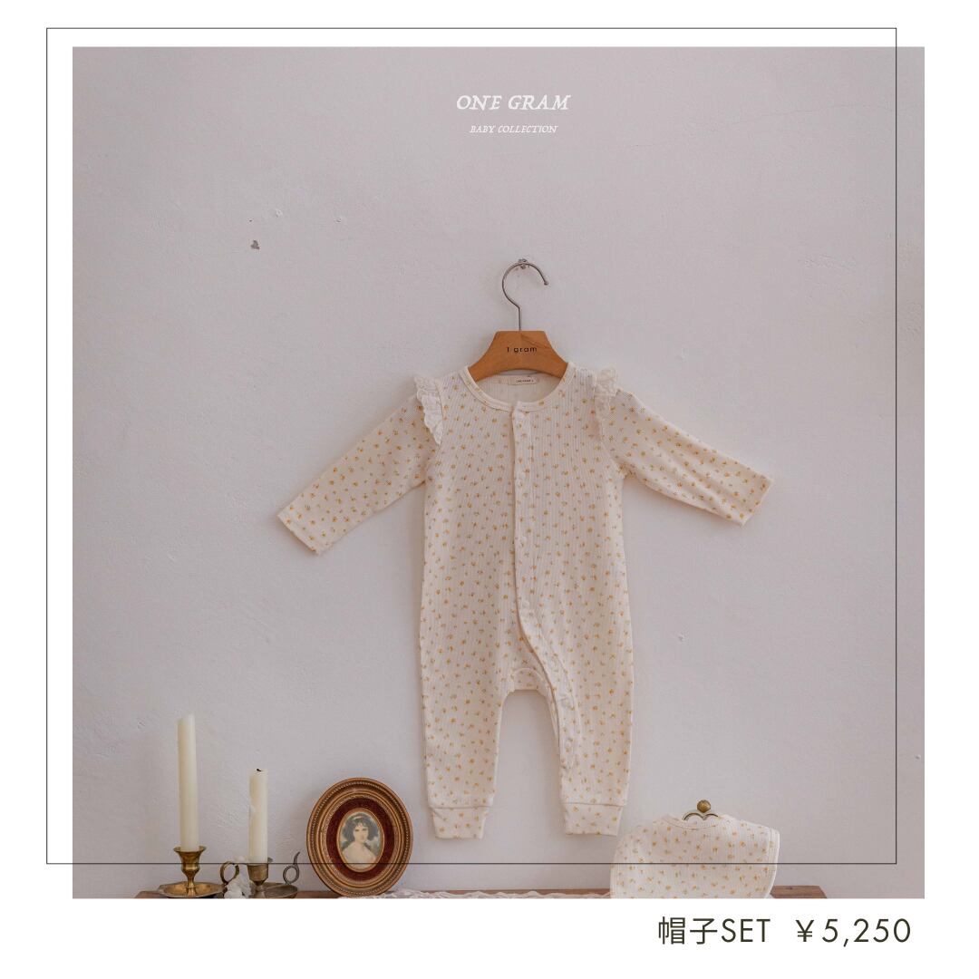 [即納]小花柄フリルレース カバーオール 帽子set 2color 60・70・80